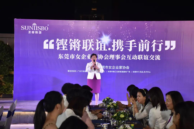接下来,东莞市女企业家协会理事会会长叶小红女士上台发言,她表示非常感谢BB贝博艾弗森集团举办此次联谊交流会,同时,对我们的产品和企业文化给出了很高的评价。她号召东莞市女企业家协会以后要更多的举办此类交流联谊活动,以此增进会员企业之间的联系和了解,为未来进一步交流发展开创新局面!她希望我们能携手同行,强强联手,共赢未来,共创新辉煌!