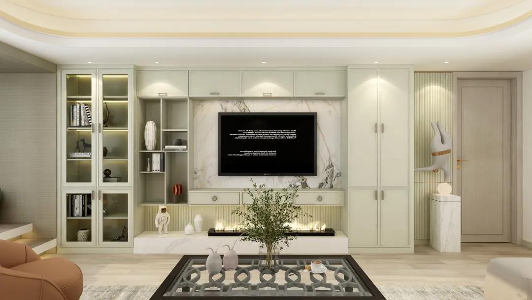 背景墙区域透过定制柜的材质纹理、立面线条、